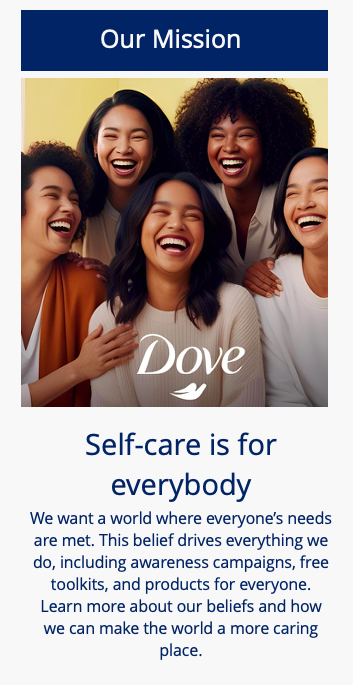Unlike many beauty brands that rely on idealized standards, Dove connects with consumers by celebrating authenticity and diversity, empowering individuals, especially women, to feel comfortable in their own skin.